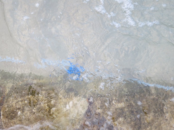 海中にセンサーを入れた状態です。センサーを繋ぐチューブの長さがギリギリで、満潮時には装置本体に波がかぶりそうでした。