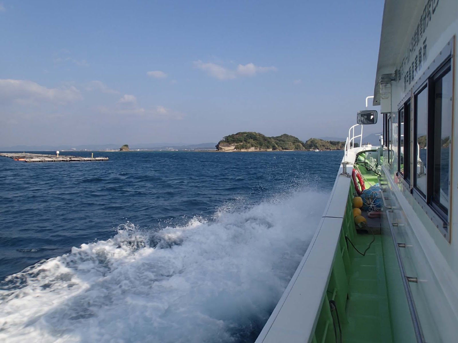 早速、出港!前方に見えるのは我らが畠島です。実習中はお世話になりました。