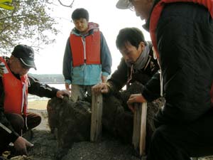 しかし近年では、無断上陸した海水浴客による、ごみの投棄や火気の使用が問題になっています。畠島にはそのような行為に対して注意を呼びかける看板が設置してありますが、より効果的な設置を検討するため、今日所員による視察を行いました。