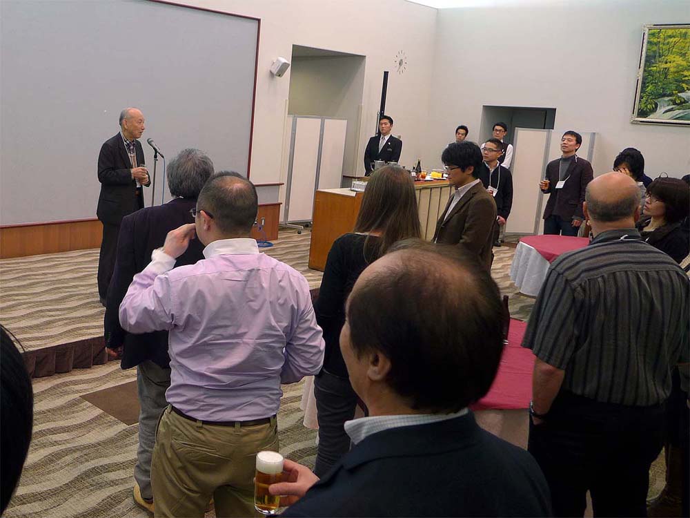 | 乾杯の音頭は、精子の研究で有名な毛利秀雄先生でした。 |