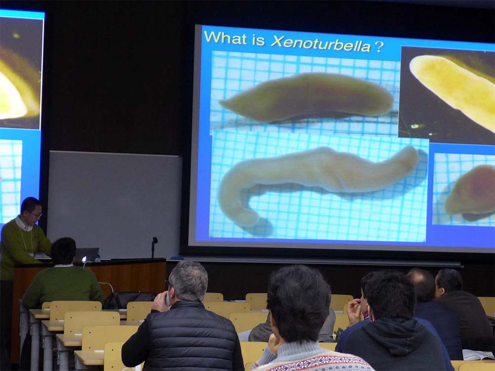 JAMBIOとは「マリンバイオ共同推進機構(Japanese Association for Marine Biology)」の略称で、筑波大下田臨海と東大三崎臨海が連携して組織する文科省共同利用・共同研究拠点です。今回の国際シンポは“Marine Biology – Cell and Evolution”のテーマで、国内より12名、国外より5名(5ヶ国)の研究者が招待され、講演を行いました。