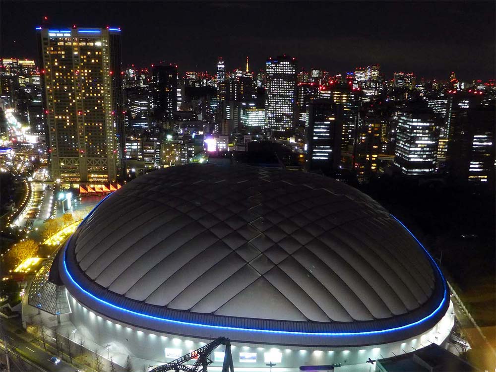 | 26階にある会場の窓からは、東京ドームが眼下に見えます。奥に見えるオレンジ色のマッチ棒みたいな構造物は、東京タワーです。 |