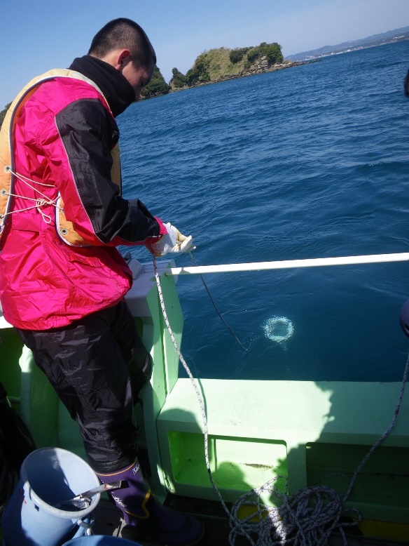 実習船ヤンチナの上から田辺湾のプランクトン採集。
