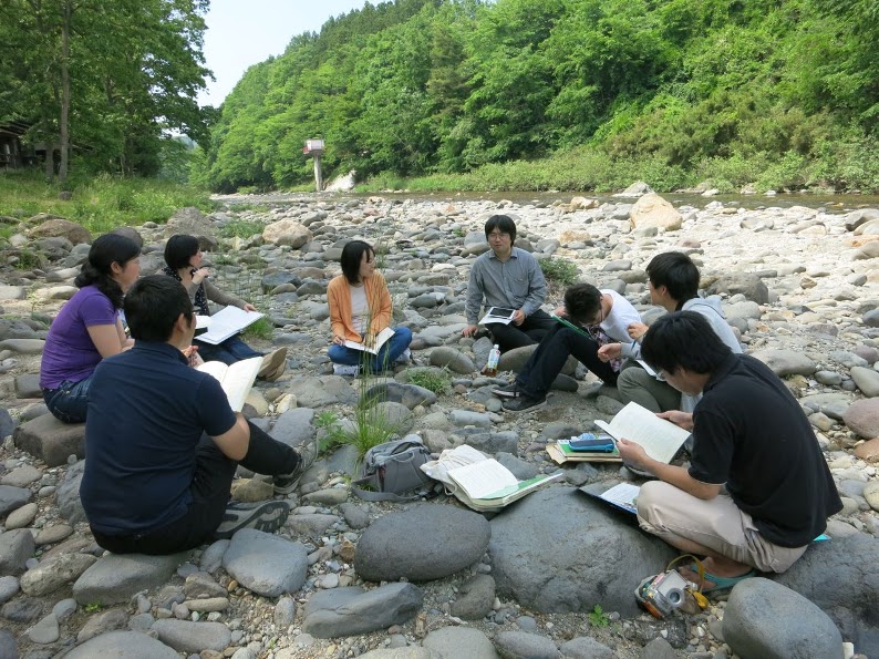 | 輪読会@木の家周辺の河原[撮影:伊勢戸徹] |