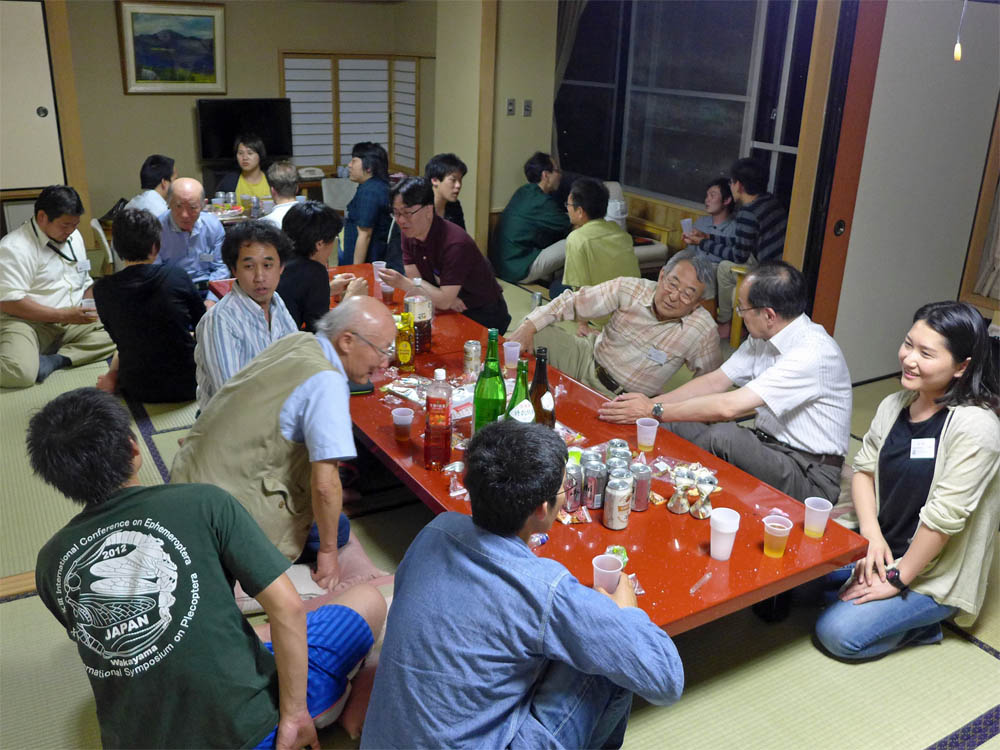 この学会、一日目の夜に必ず「シンポジウム」があります。これは安藤先生の発案で、「シンポジウム」の元々の意味、すなわち(Greek symposion, from sympinein, “to drink together”) に沿って、ベテランと若手が酒を酌み交わしながら渾然一体となって様々に語り議論し合うというもので、発表よりもこちらの方が絶対学問の進歩に寄与しているはずです。