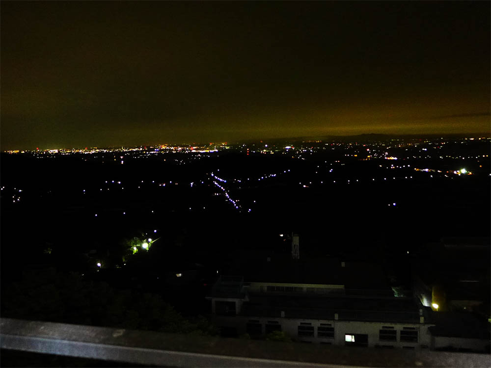 | ホテルから見た、つくば市街地方面(左側の明るい所)の夜景。私が筑波大に入学した30年前は、夜景はもっとシンプルでした。 |