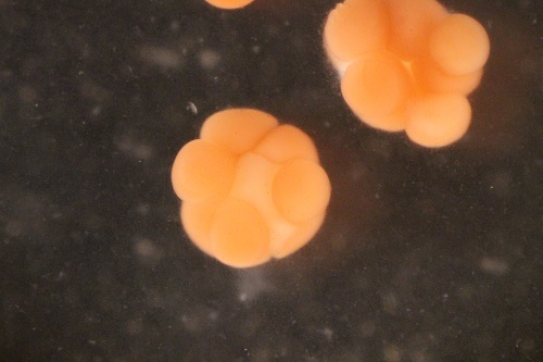 8月初旬に田辺湾から採集したサンゴが産卵しました / 調査 / By SMBL_Info / 2013年9月2日 実験所裏の沖から採集してきた造礁サンゴ類(イシサンゴ目)の1種クシハダミドリイシAcropora hyacinthusが産卵しました。 卵を産んでいるようにも見えますが、内側が精子、外側が卵子から構成されているバンドルと呼ばれる配偶子隗を放出しています。このあと他群体からの卵子又は精子と授精し、幼生となって海を漂った後に変態・着底して稚サンゴになります。 https://www.seto.kyoto-u.ac.jp/setoblo/wp-content/uploads/2013/09/7b202331156b8e01.mp4 産卵風景 バンドルの写真 サイズ約1㎜ ピンク色の部分が卵子、白い部分が精子 (Posted by 諏訪)