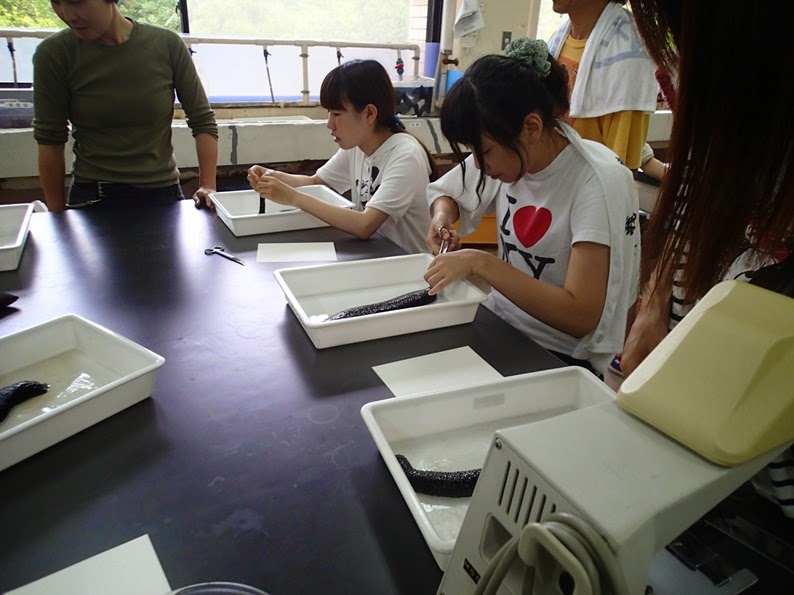 本実習では,プランクトン観察,メイオベントス観察,畠島でのマクロベントス観察,水族館見学,ウニの発生実験,ナマコの解剖などが行われました!