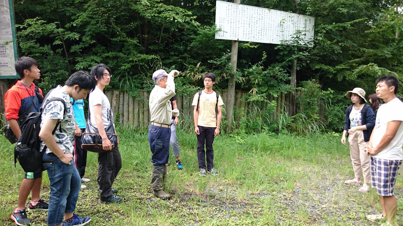 植樹して、みごとに生物の多様性の高い、生まれ変わった森にて、説明を受けます。