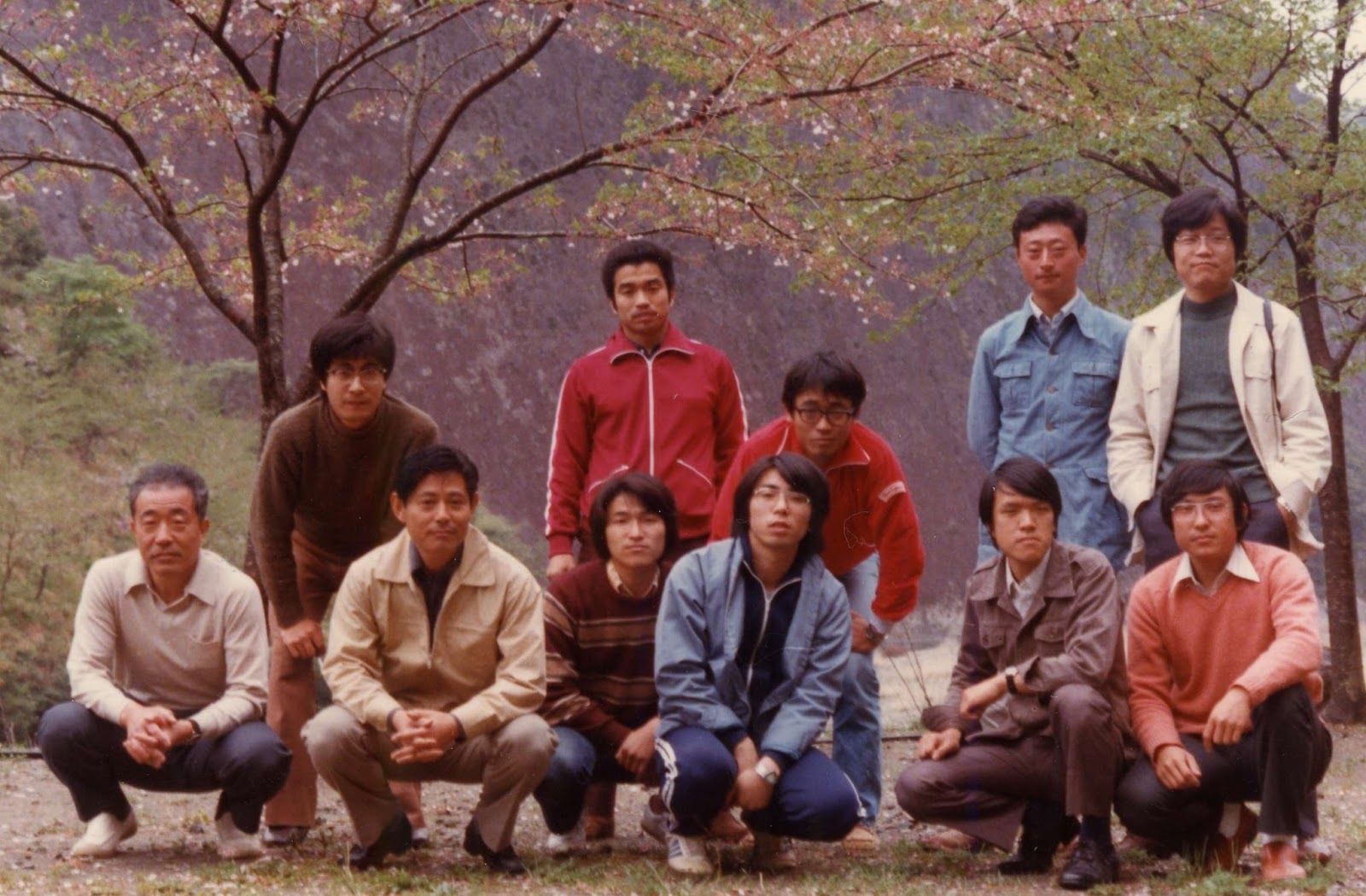 | 1978年4月17日。 後列右端が和田恵次先生。 瀬戸臨海実験所+京大理学部動物学教室有志による「海洋生物学ゼミナール旅行」。 古座川峡にて。 ©瀬戸臨海実験所所蔵写真 |