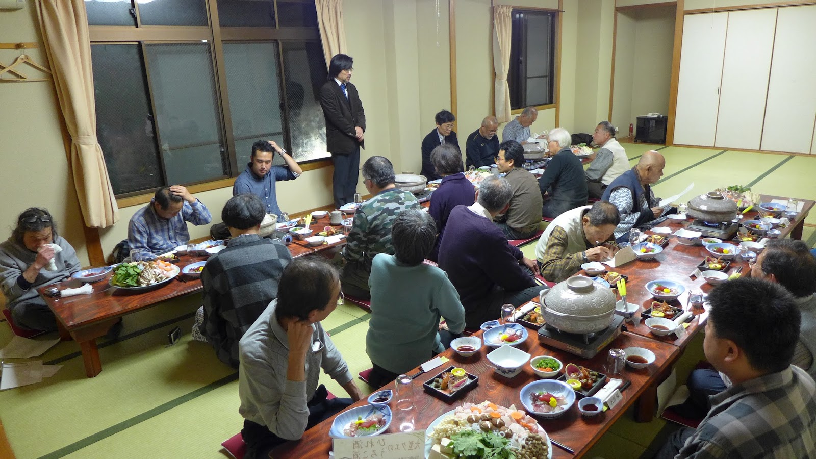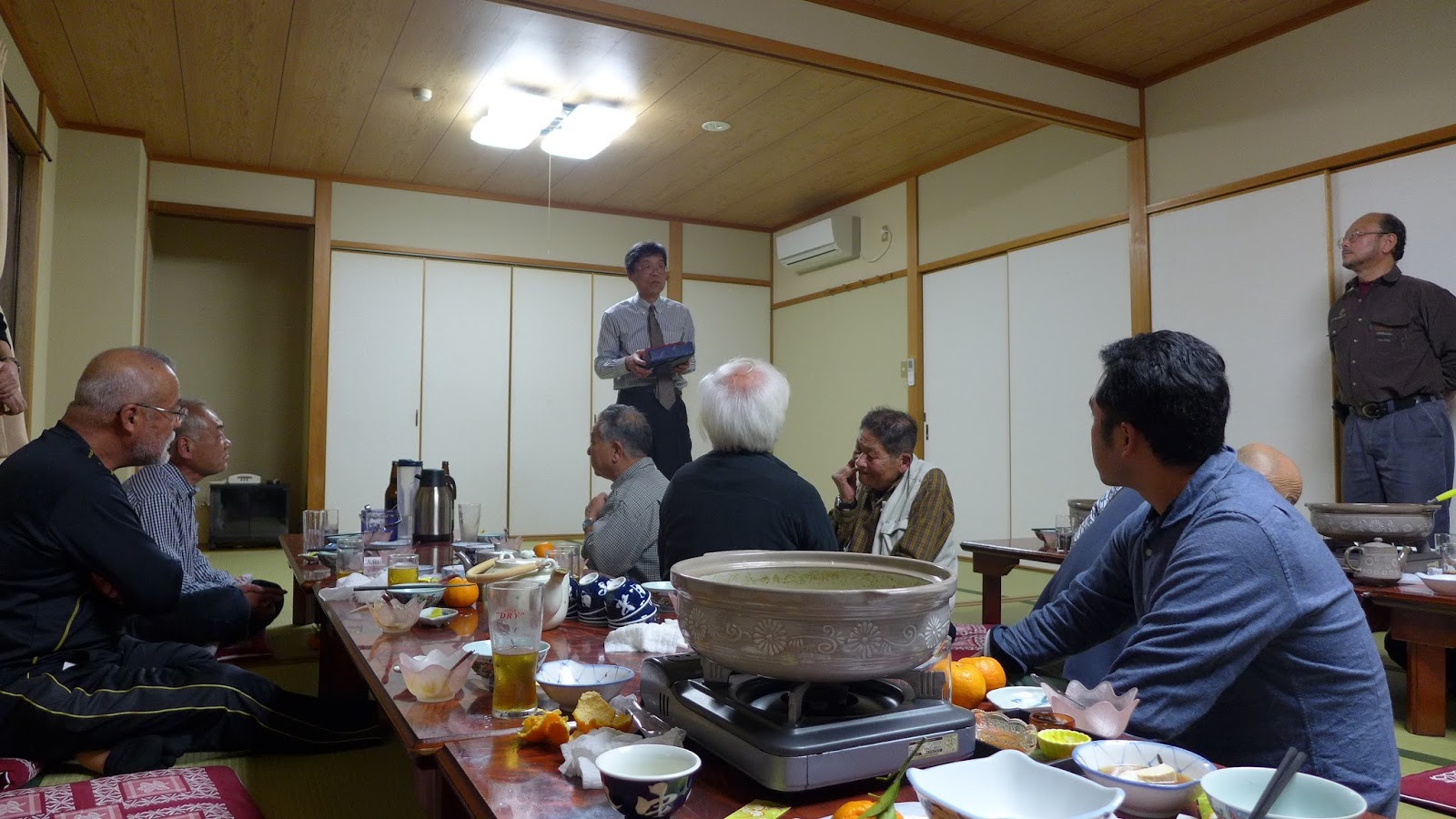 | 夜は和田先生の退官記念パーティ兼瀬戸臨海実験所OB会の懇親会です。和田先生の今回の退官記念講演会のために多くの瀬戸臨海実験所のOBの方々がお集まりいただきました。 |