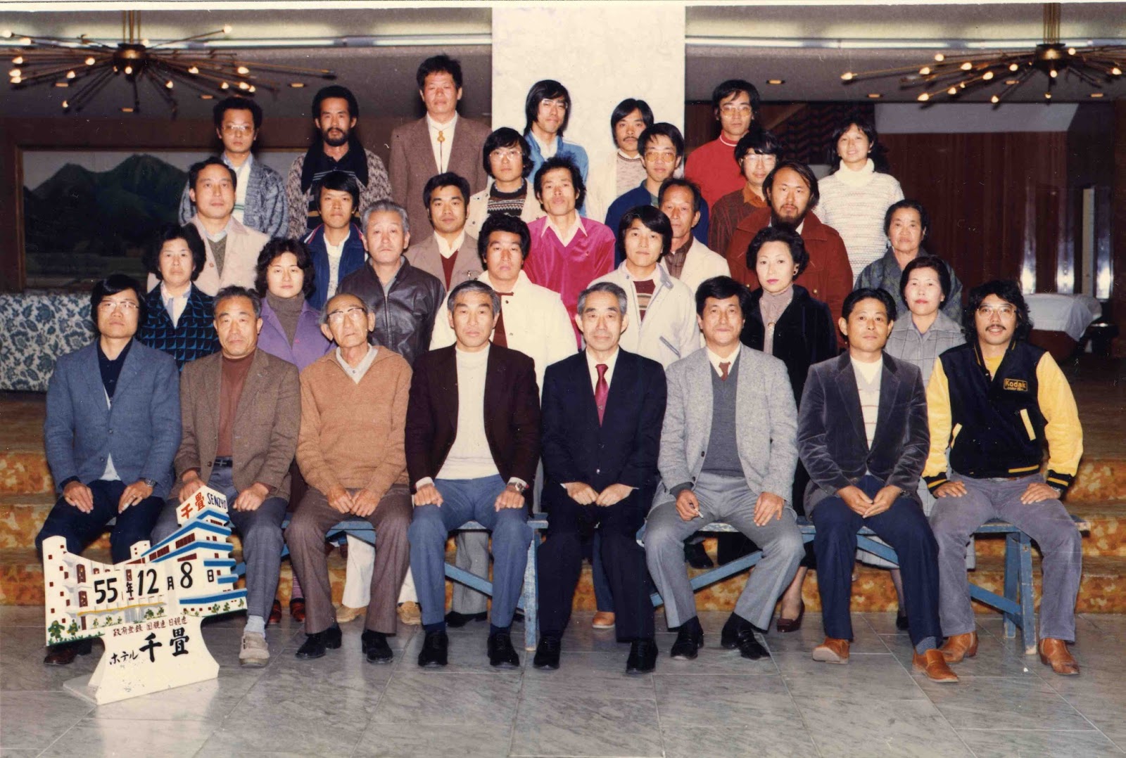 | 1980年12月8日。 瀬戸臨海実験所の忘年会。 前列左端が和田先生。 ©瀬戸臨海実験所所蔵写真 |