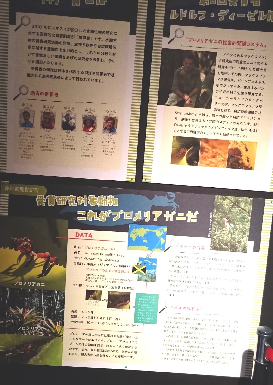今年の神戸賞の受賞内容であるブロメリアガニにちなんで、カニに関する特別展が須磨水族園で開催されていました。