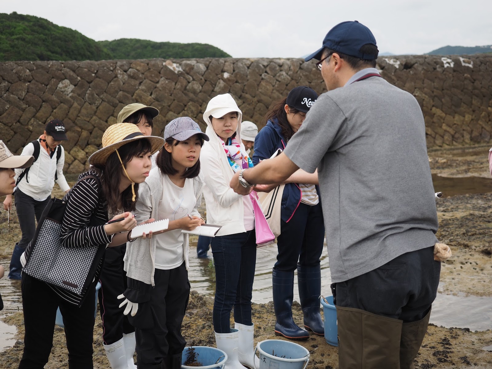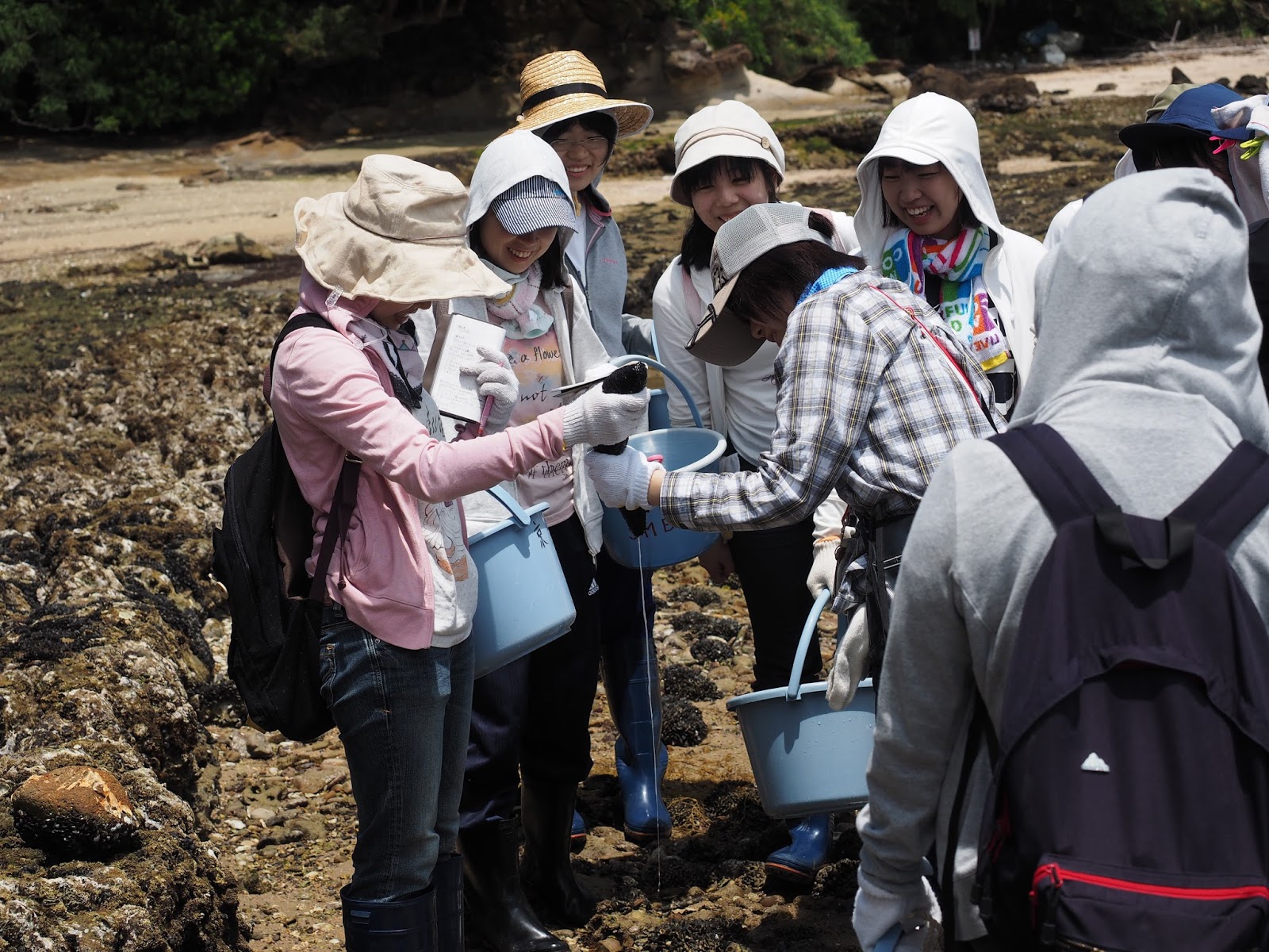 遊佐先生による潮間帯の生物についての解説を聞き、みんな熱心にメモ。