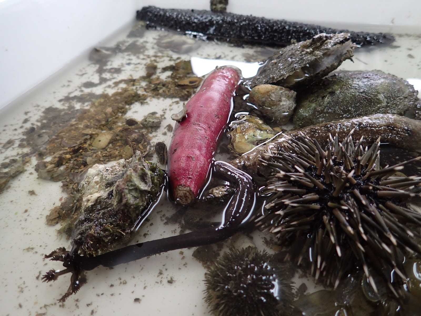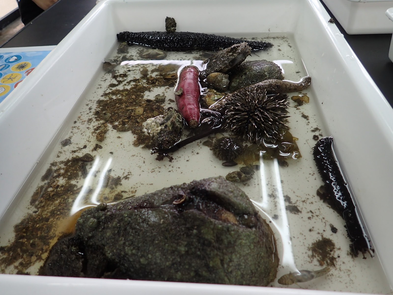 頑張って採集した分,同定作業も大変です.ちゃんと同定できたかな,あのムラサキ色の固いナマコ….