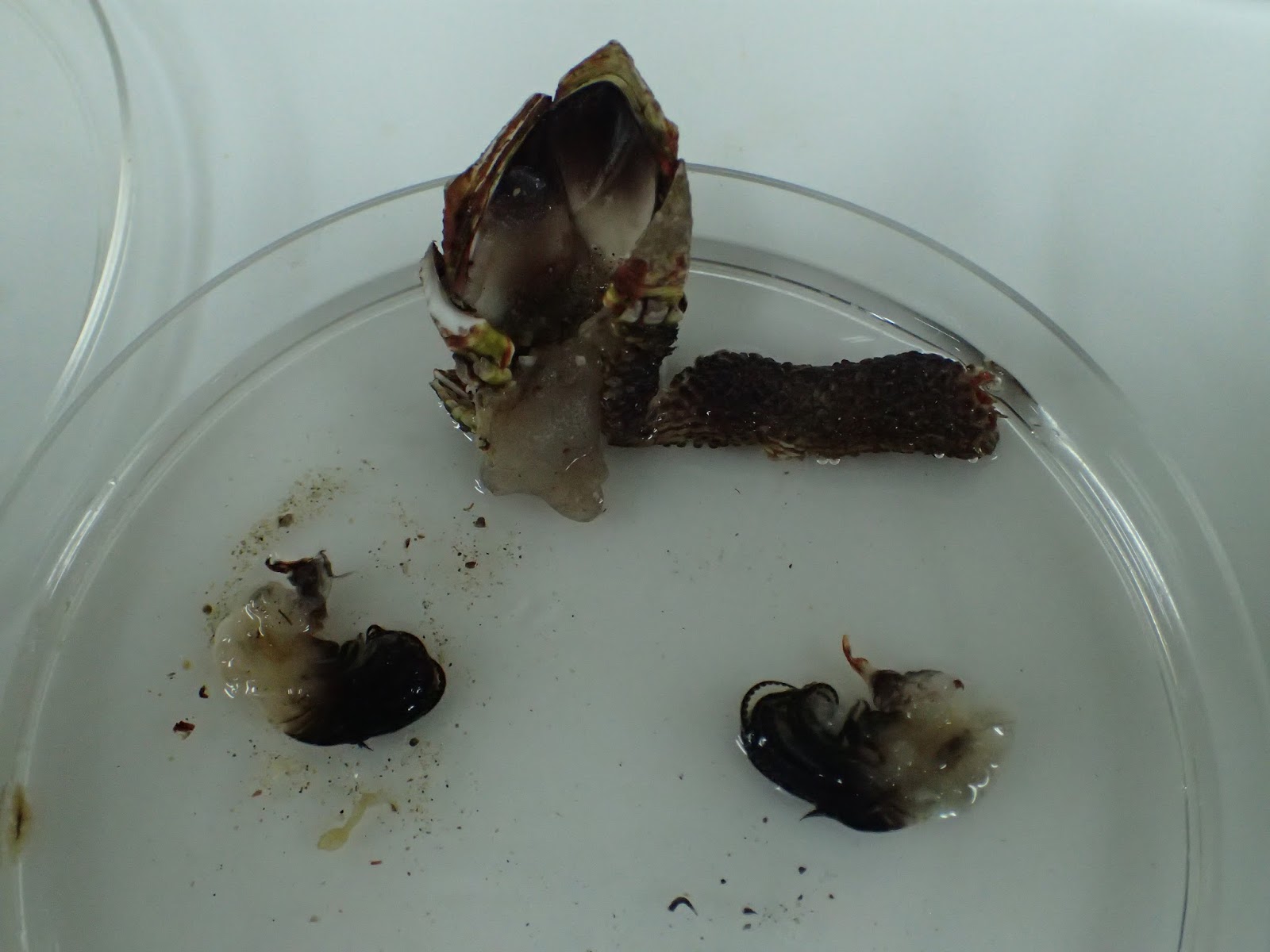 それでも岩場に固着するカメノテを採集し,大和先生の指導のもと解剖とスケッチの始まりです.