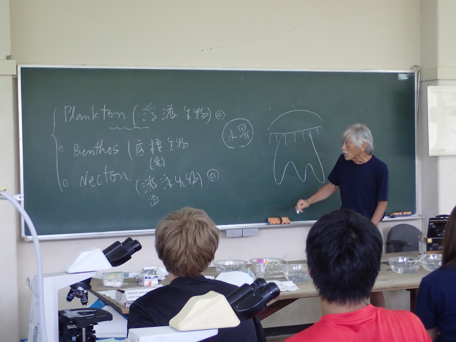 この日は内田先生によるプランクトンの講義を受け,実際に採集と観察を行います.