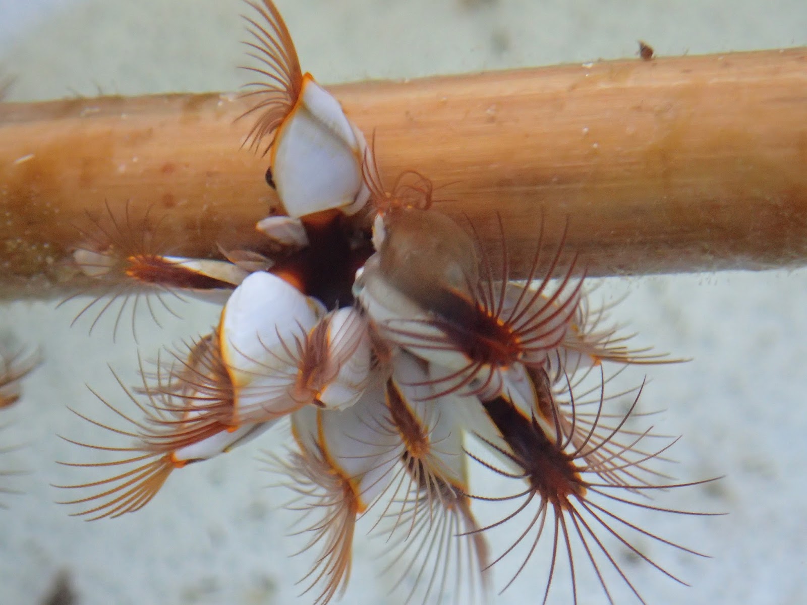 漂着した竹の表面に,カルエボシ(多分)が付着していました.こう見えても甲殻類.