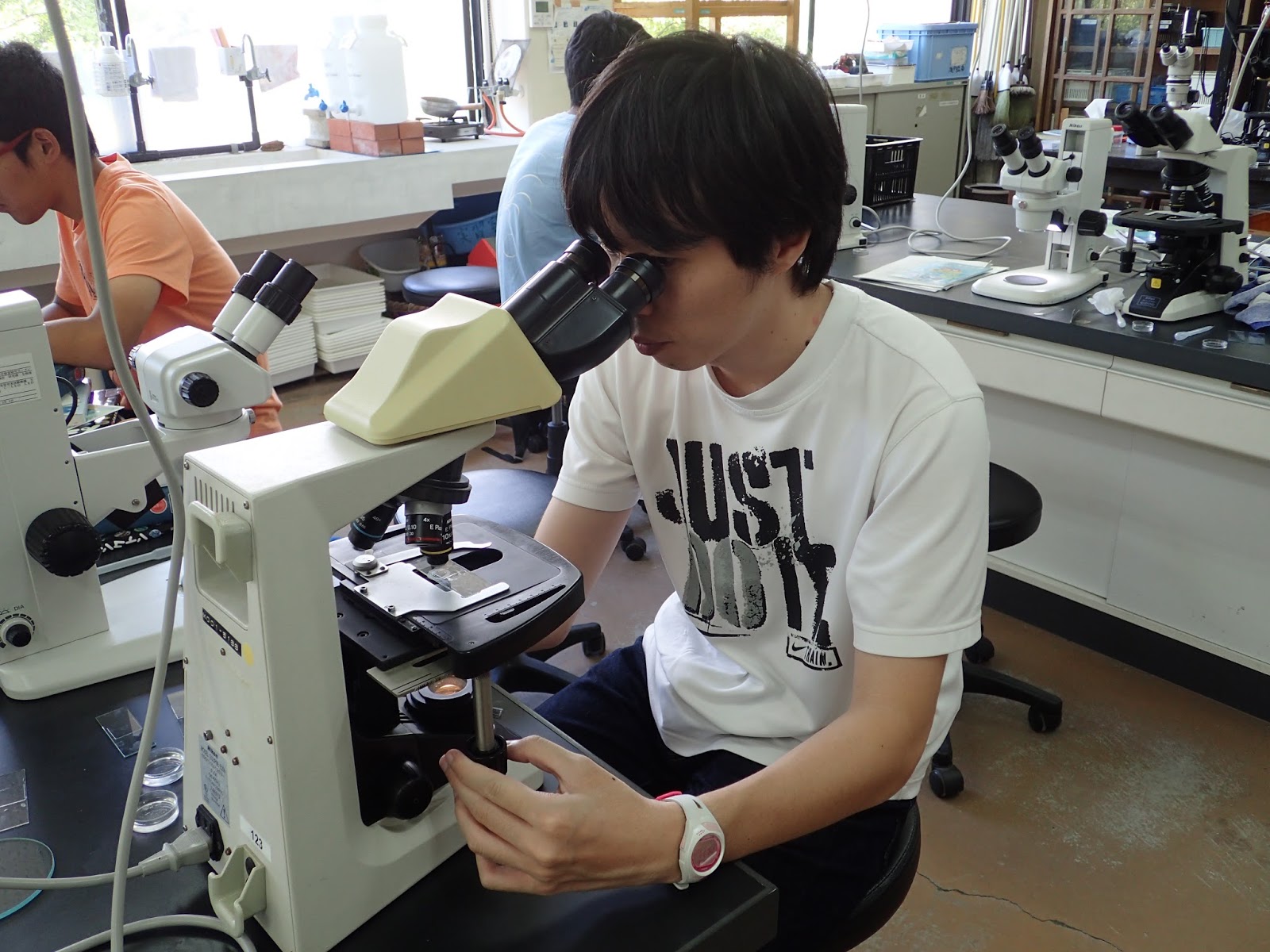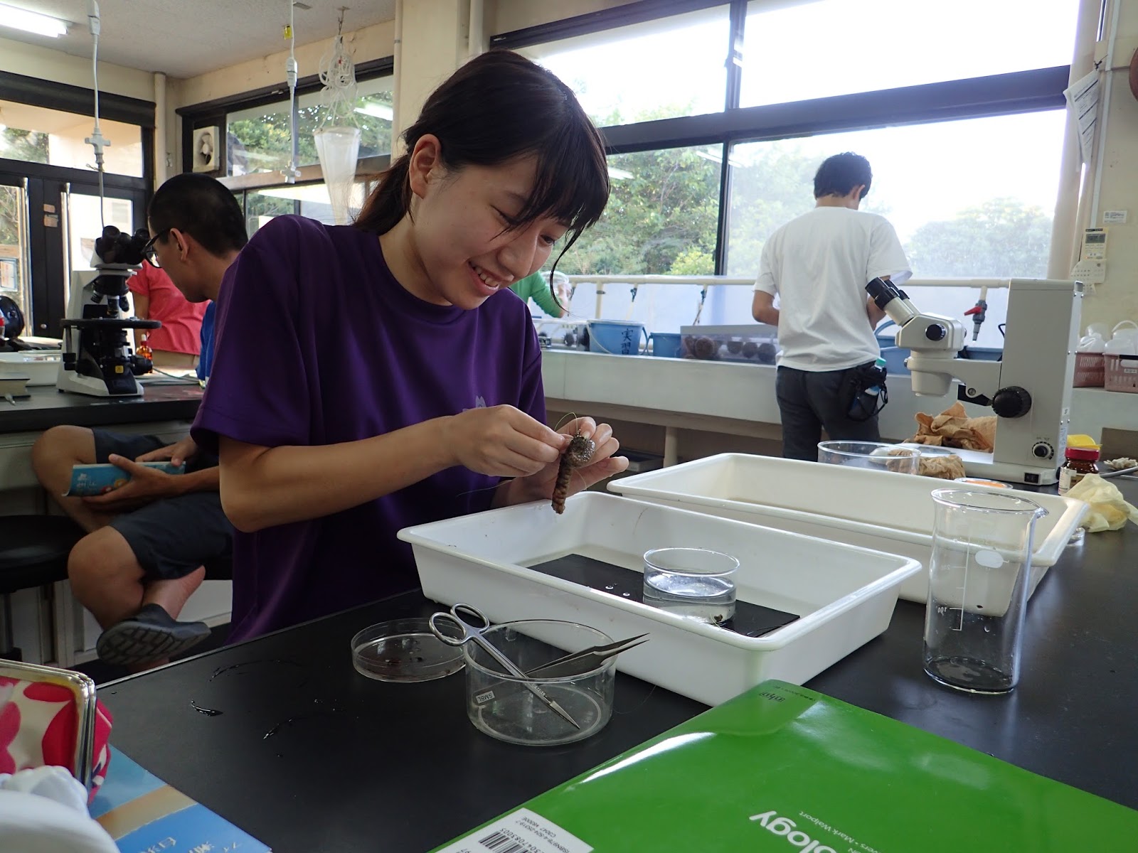 その頃4部では… 笑顔でナマコの皮膚移植にチャレンジしたり,渋くケヤリムシの同定を進めていました.
