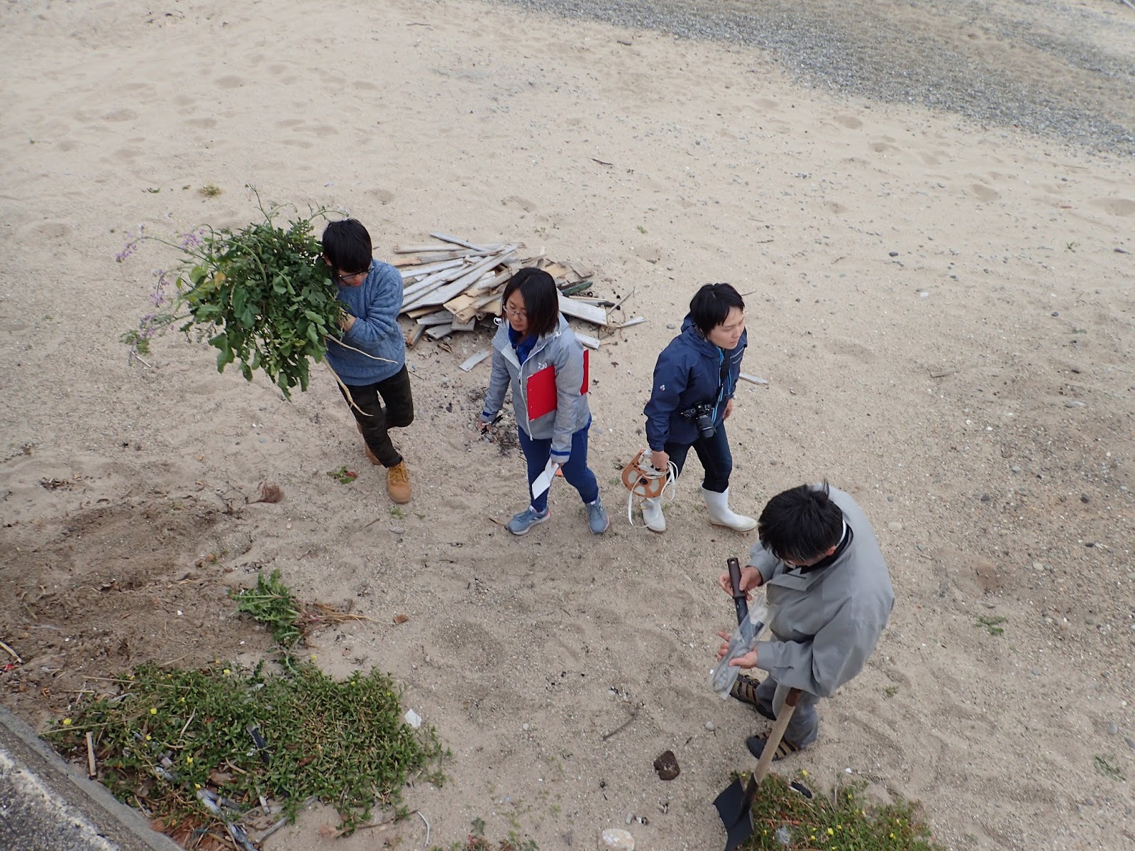 5日目も朝早くからのスタートでした.まずは昨日採集した海浜植物の標本作成です.