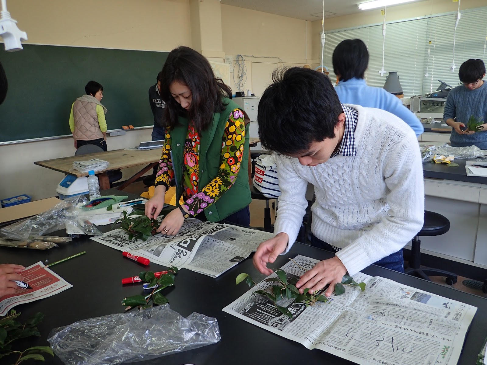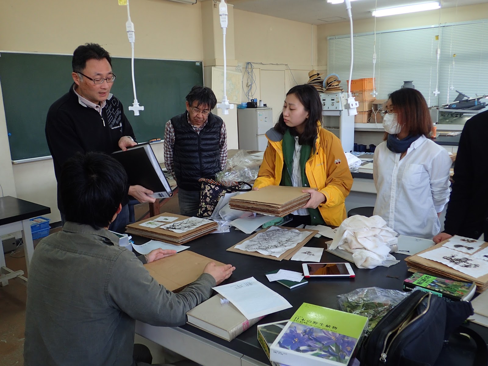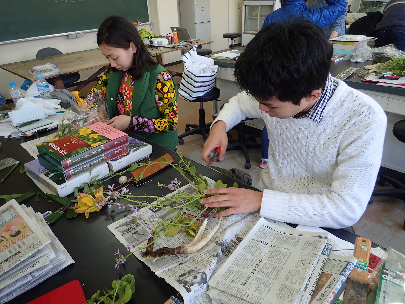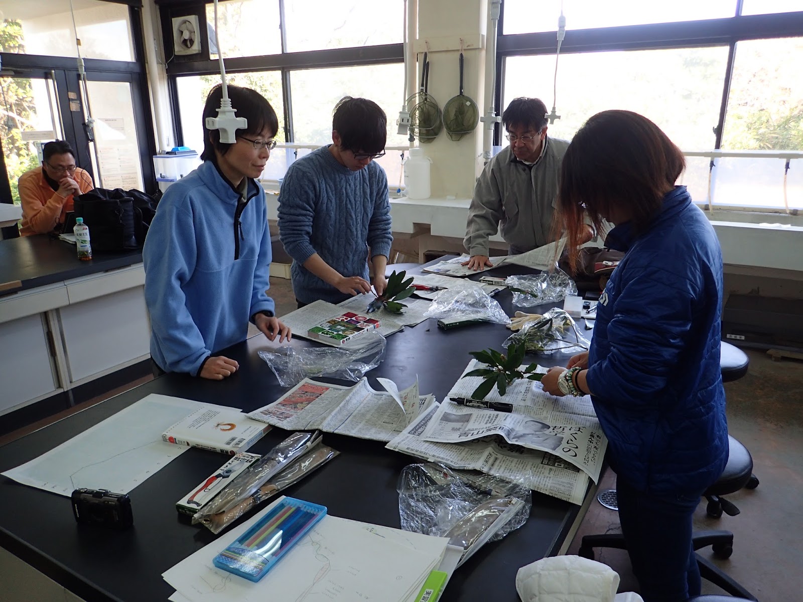 採集した植物は標本にします.もう手慣れた感じですね.