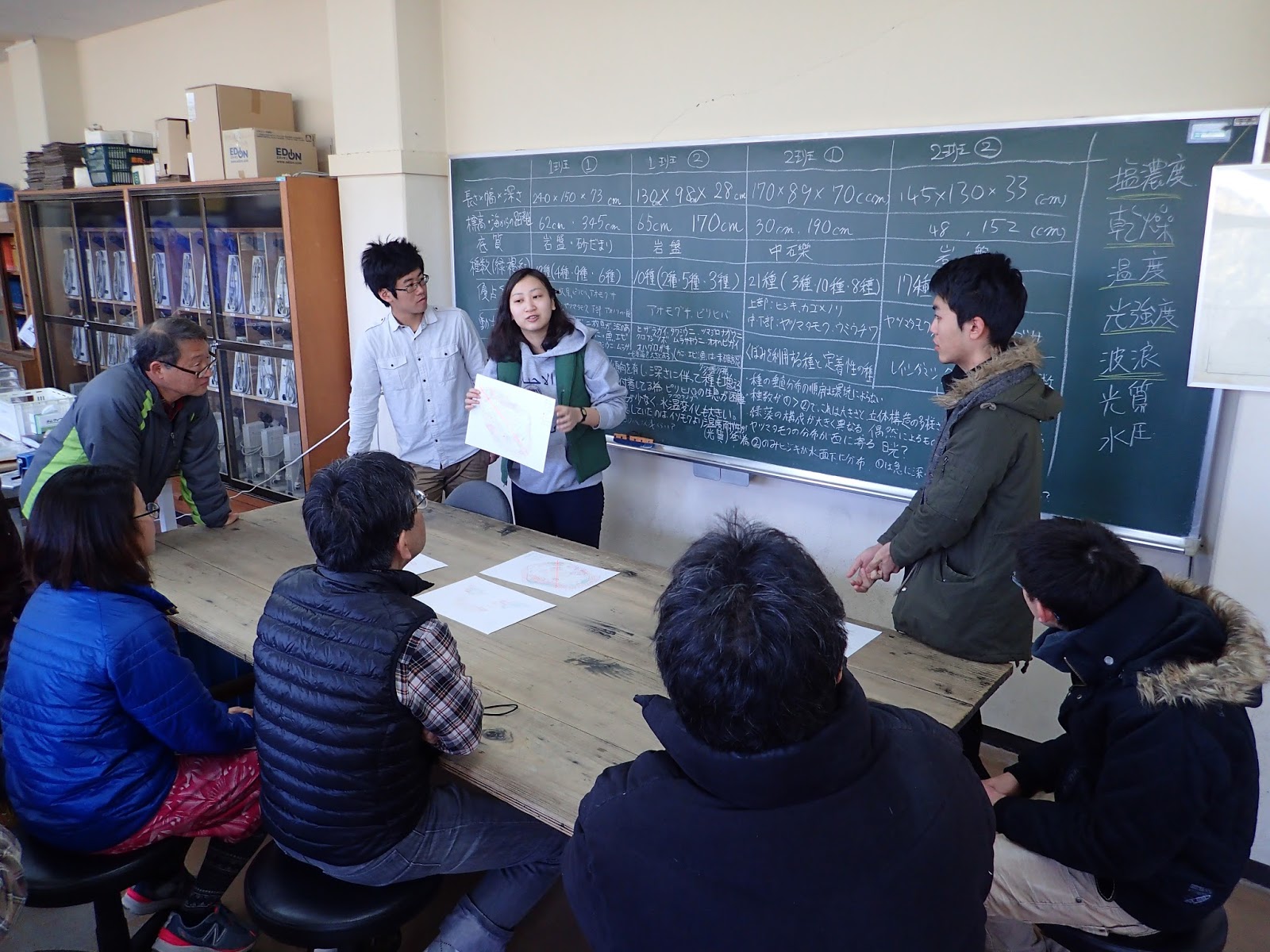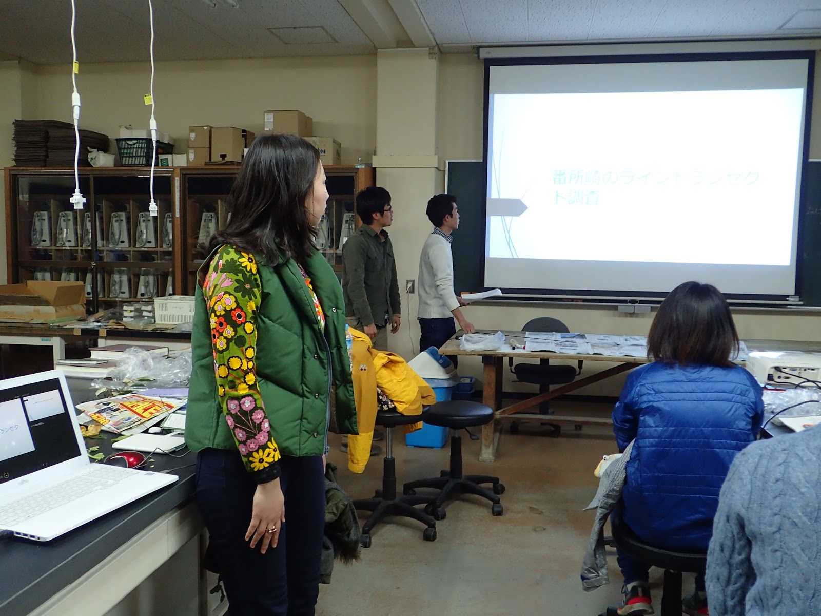 実験所に戻ってから,データをまとめて発表の準備にとりかかります.