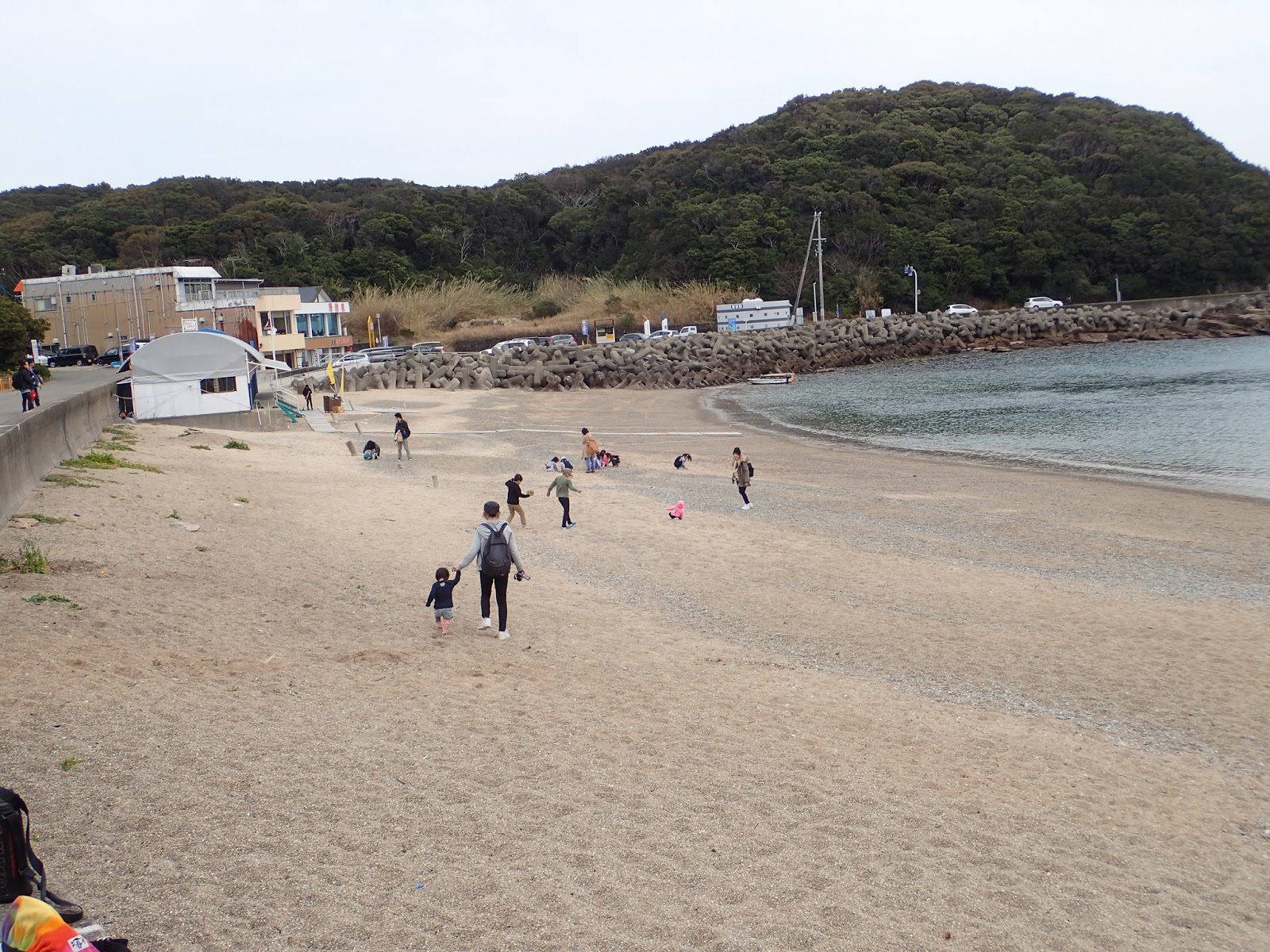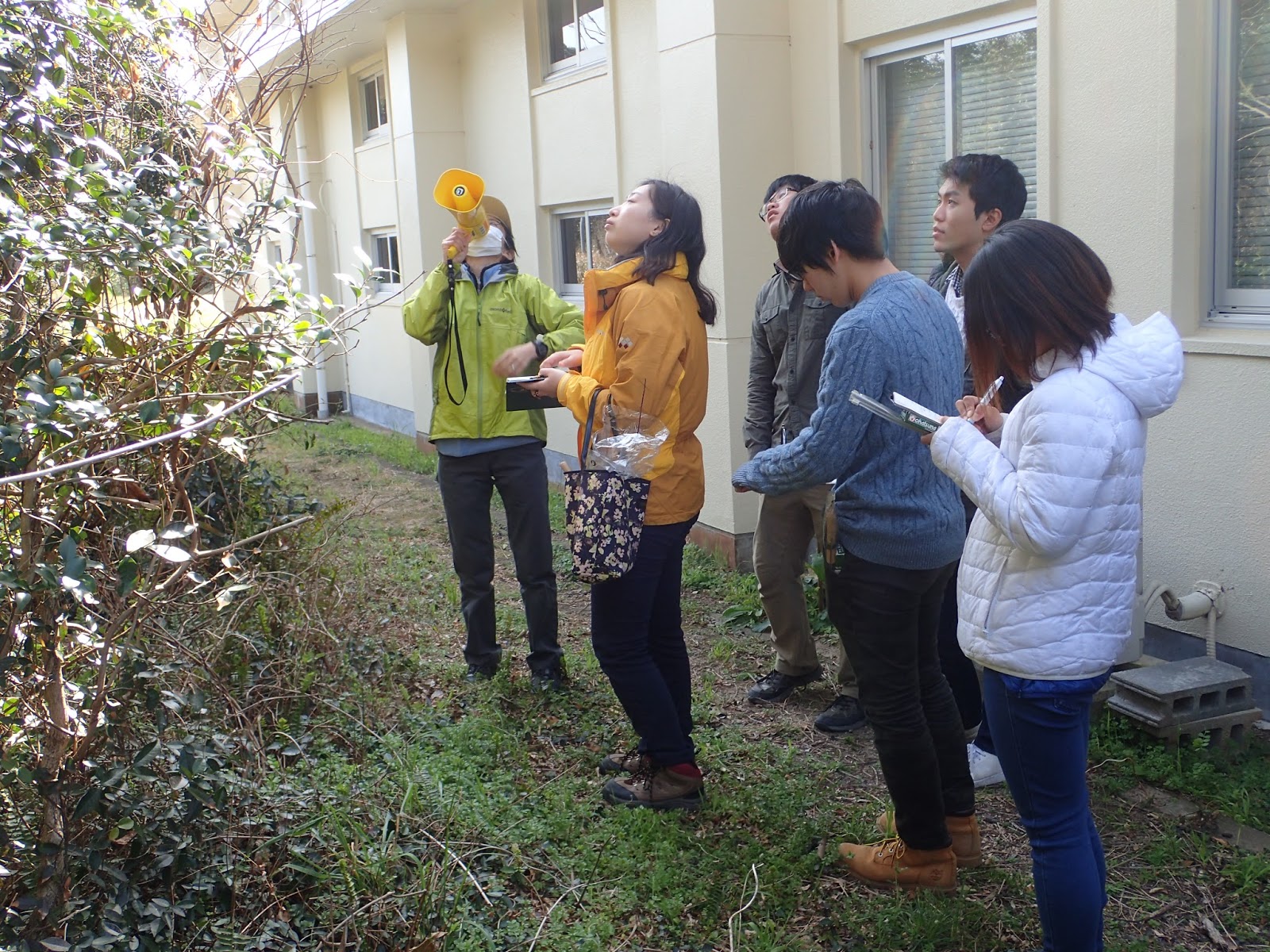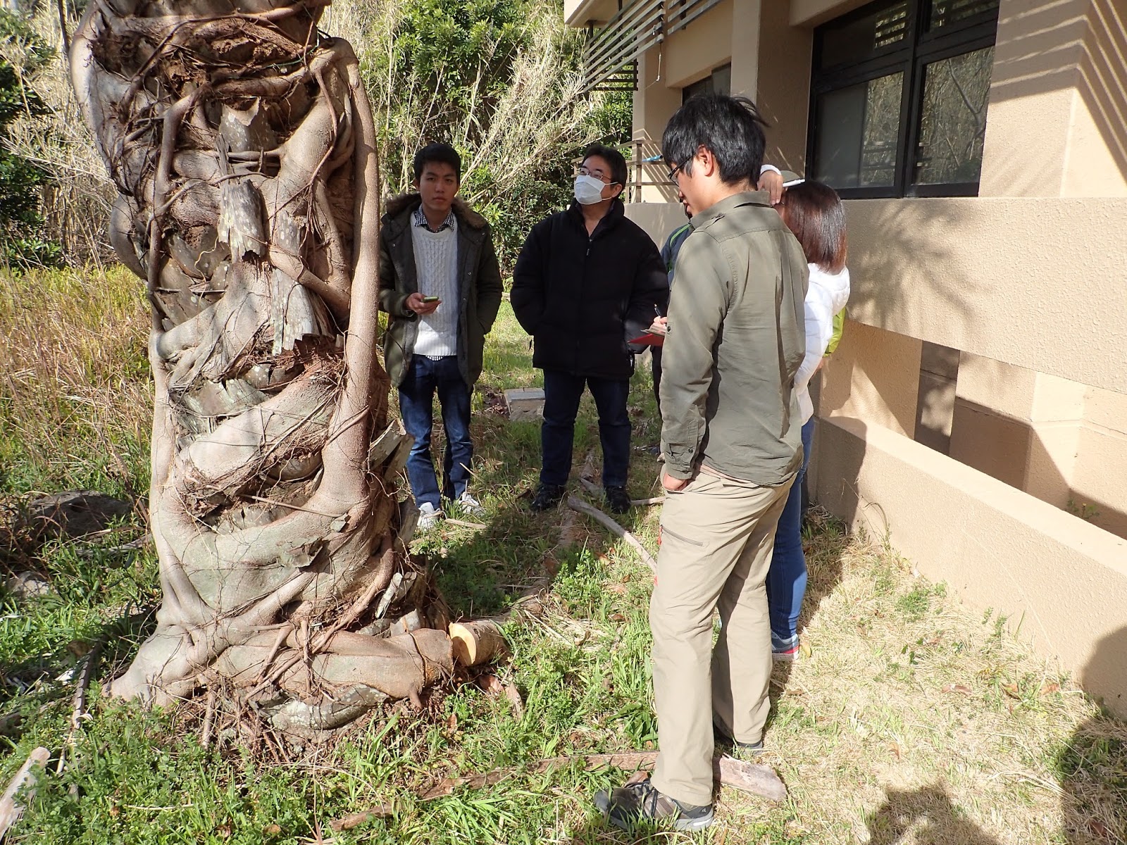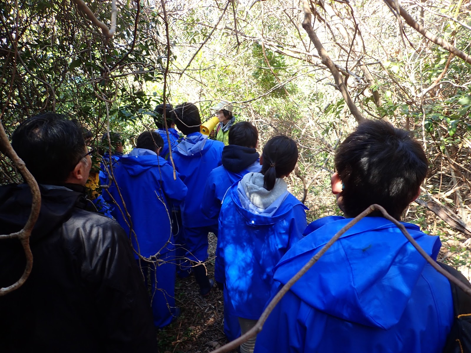 京大理学部の田村先生と布施先生による解説を受けながら,島内の海浜植物を観察していきます.