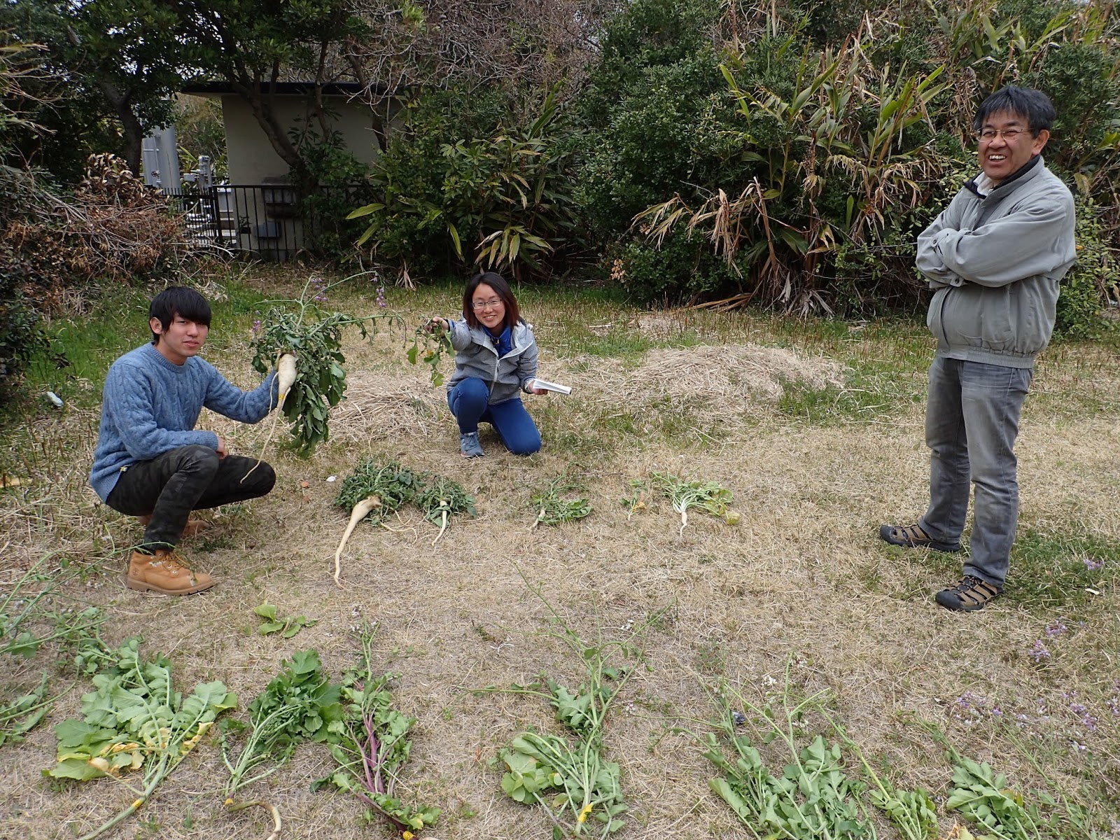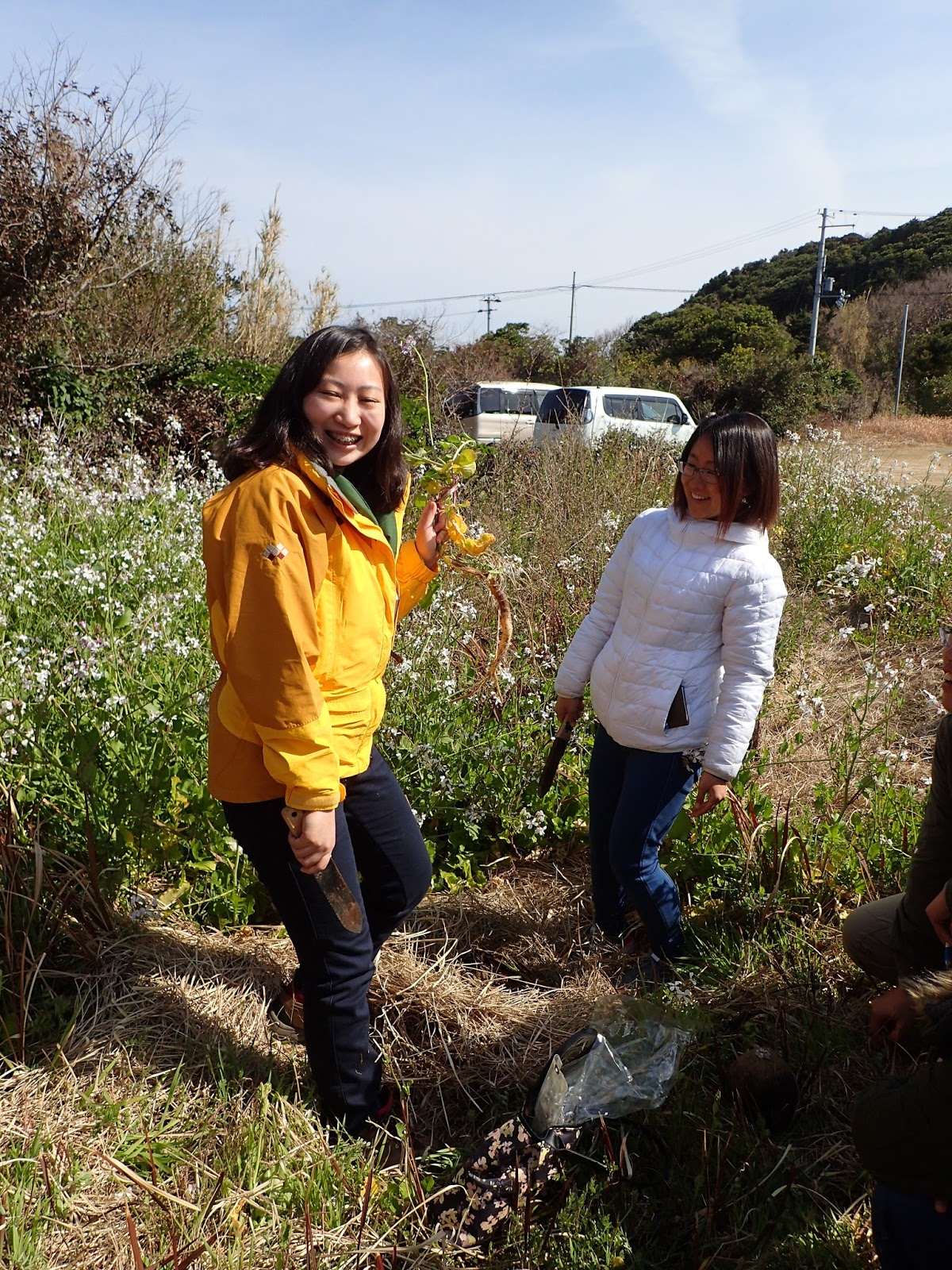 実験所の周辺にはハマダイコンという野生の大根も群生しています.とにかく固くて辛いんですが,食べることはできます.このあとハマダイコンがあんなことになるなんて…