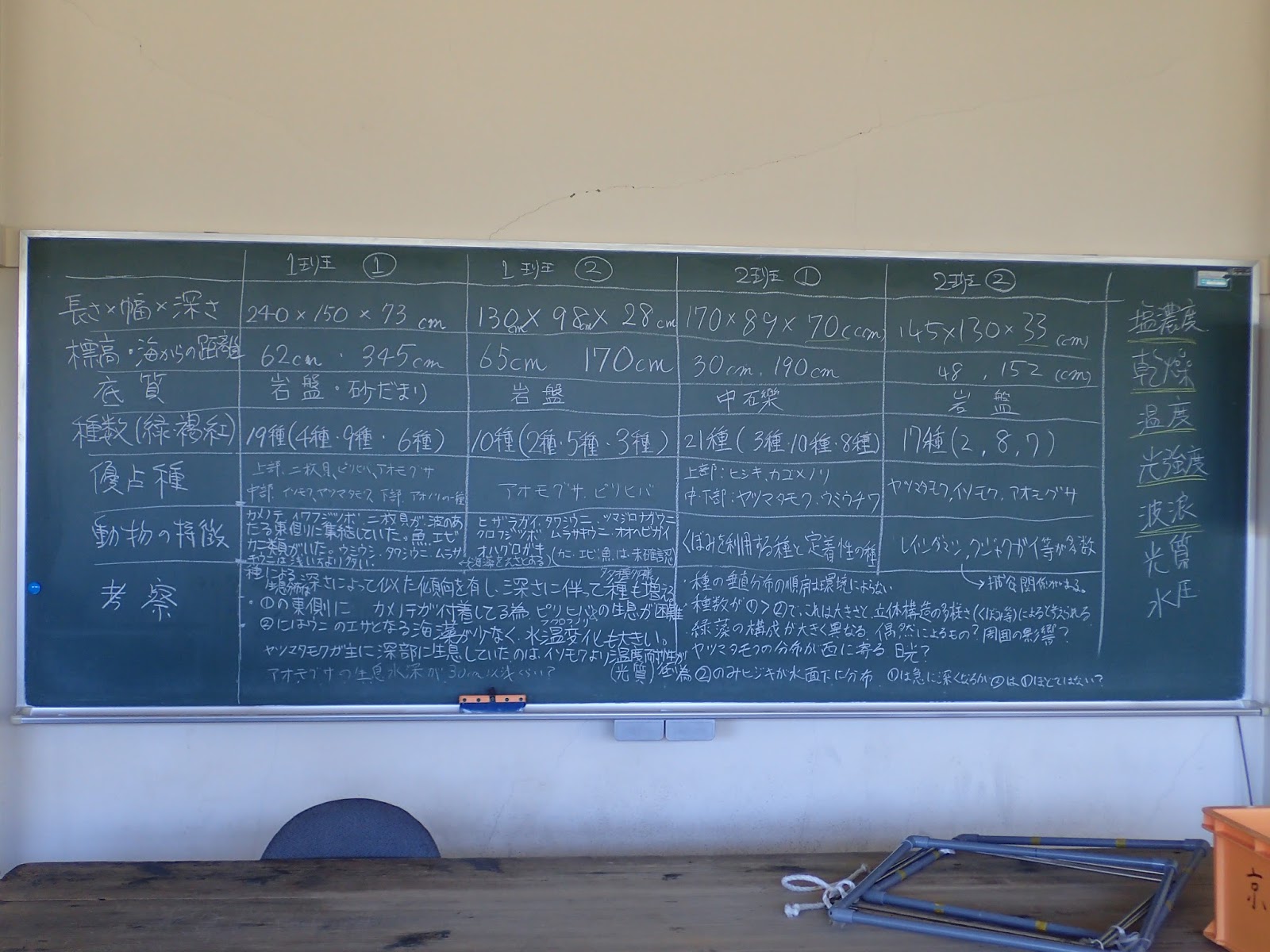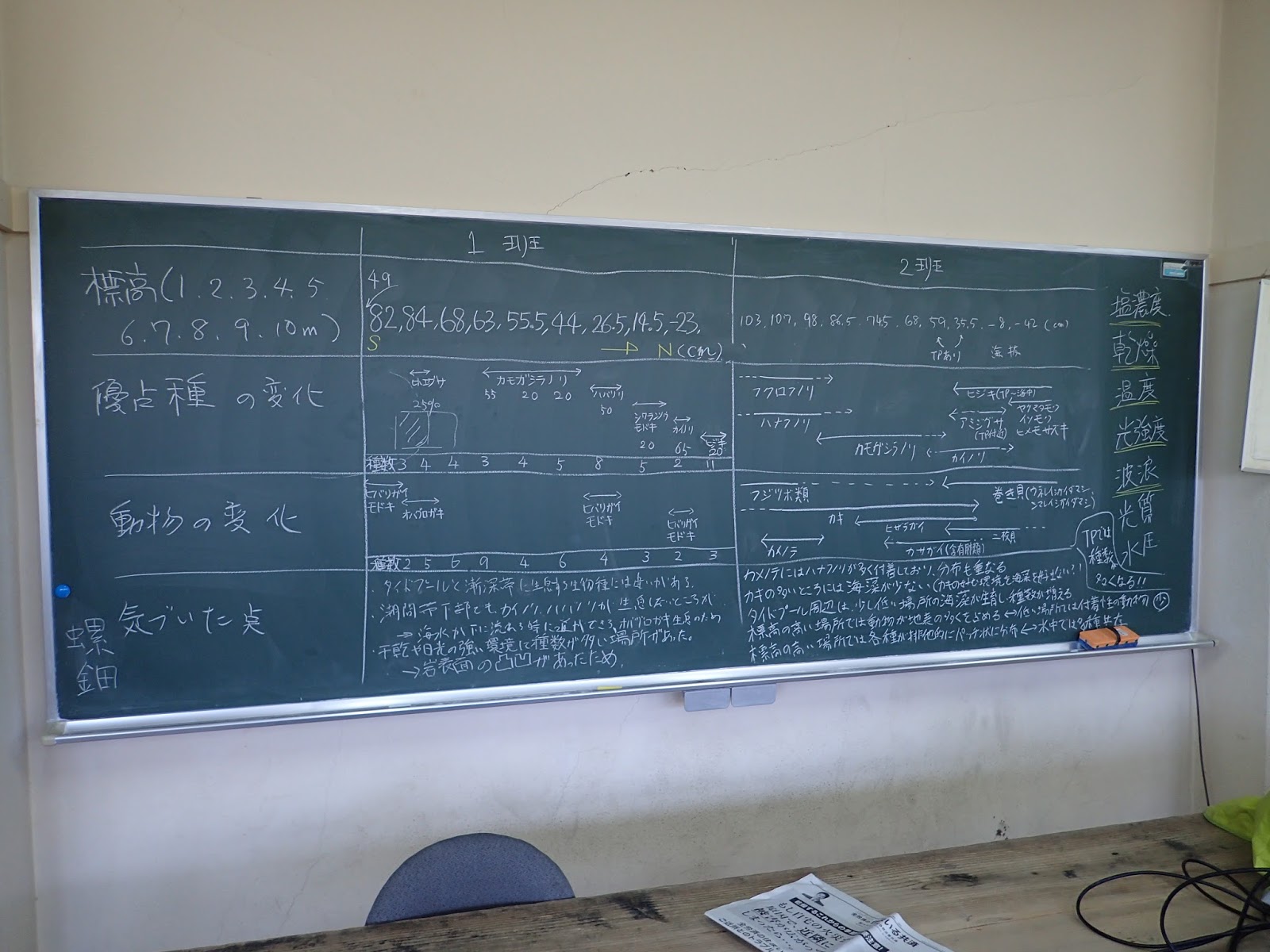 今回のタイドプール調査の成果です.なかなか細かい点まで考察されています.