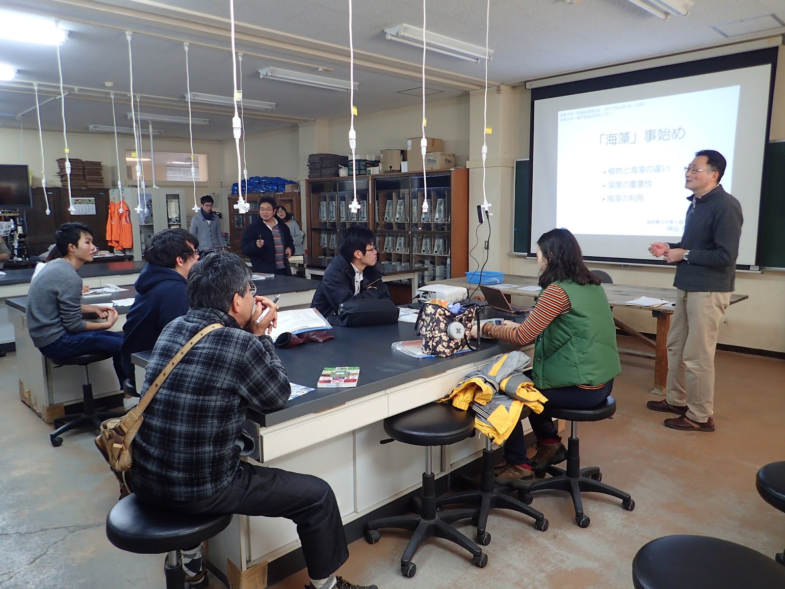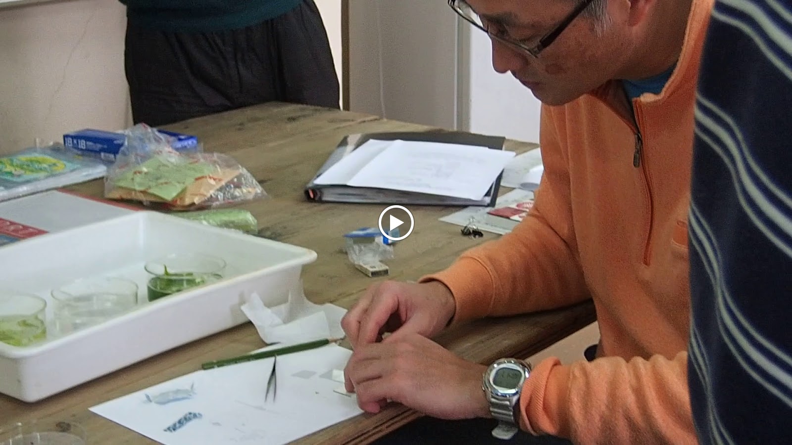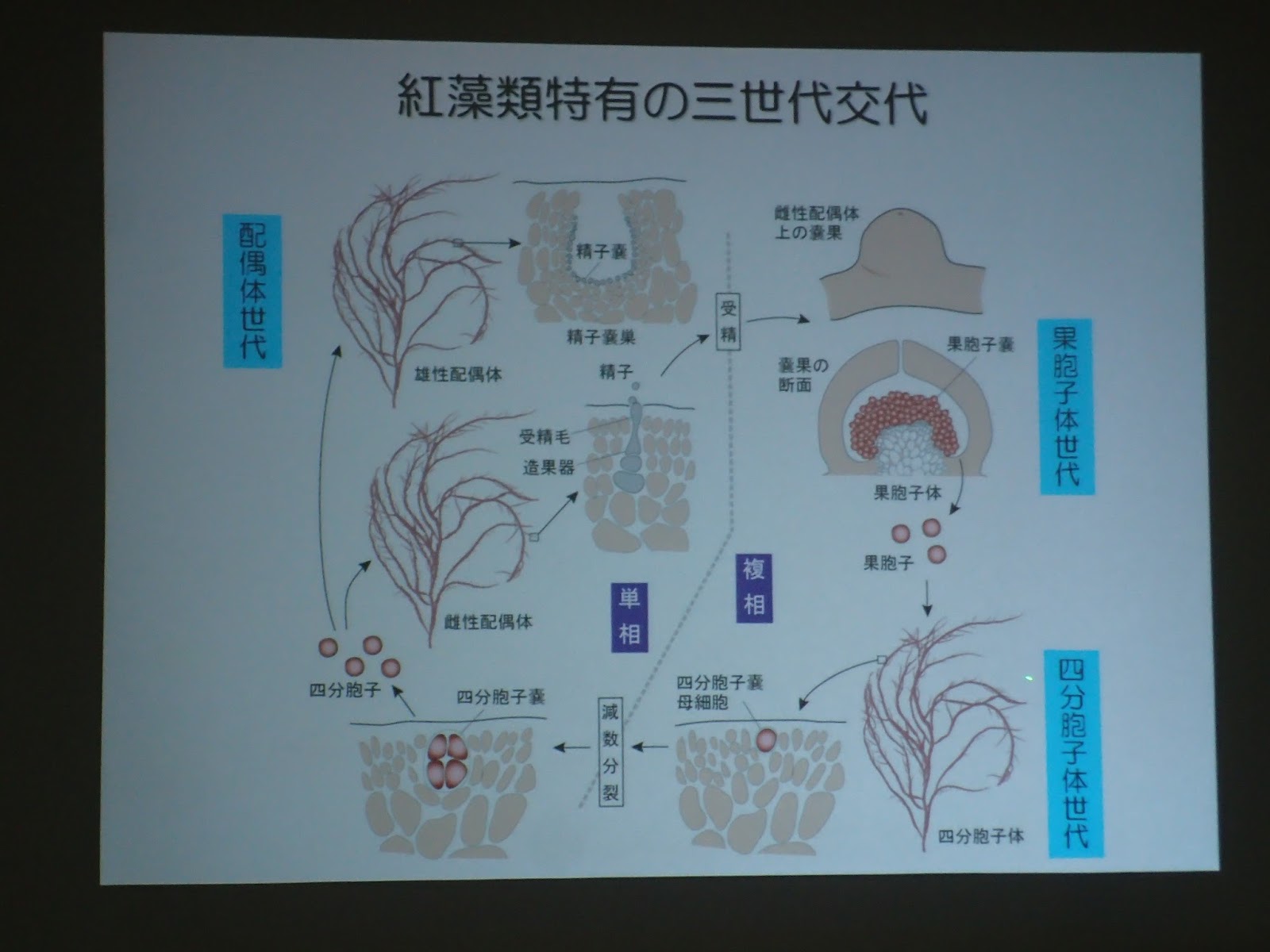 2日目は藻類の世代交代についての講義からスタートです.海藻の多くは、染色体数が半分になる配偶体と2倍体になる胞子体の間で世代交代を行います.