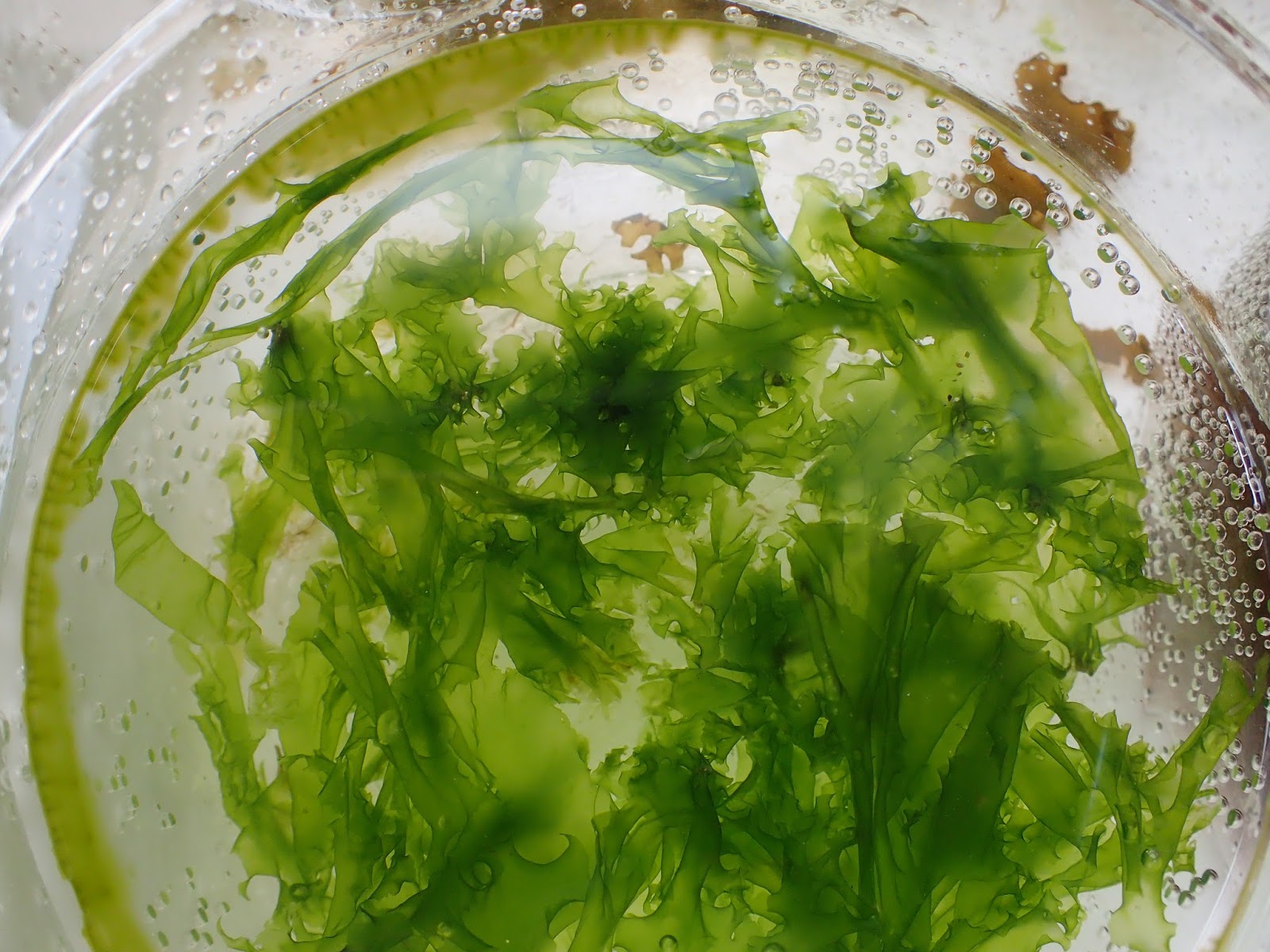 干潮までは時間があるので,ヒトエグサとアミジグサを使って表面観と断面観の観察をしてもらいました.