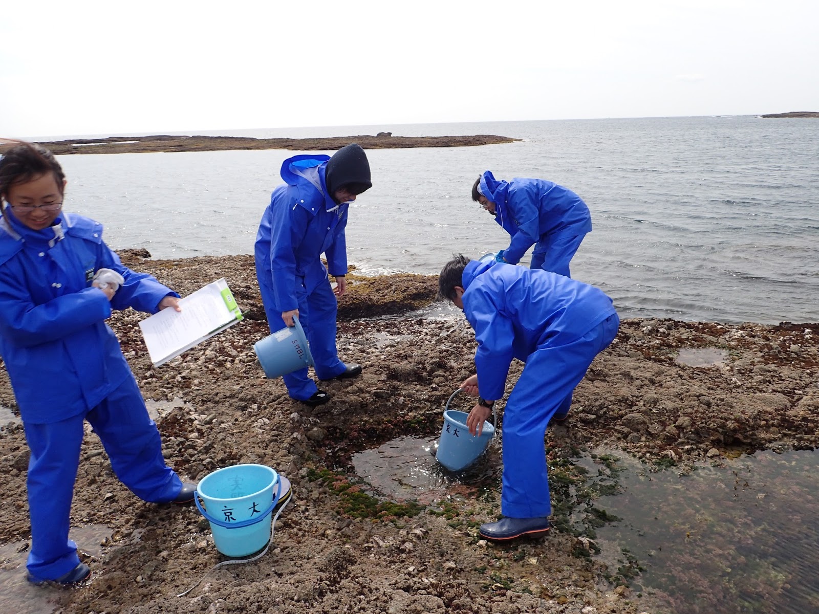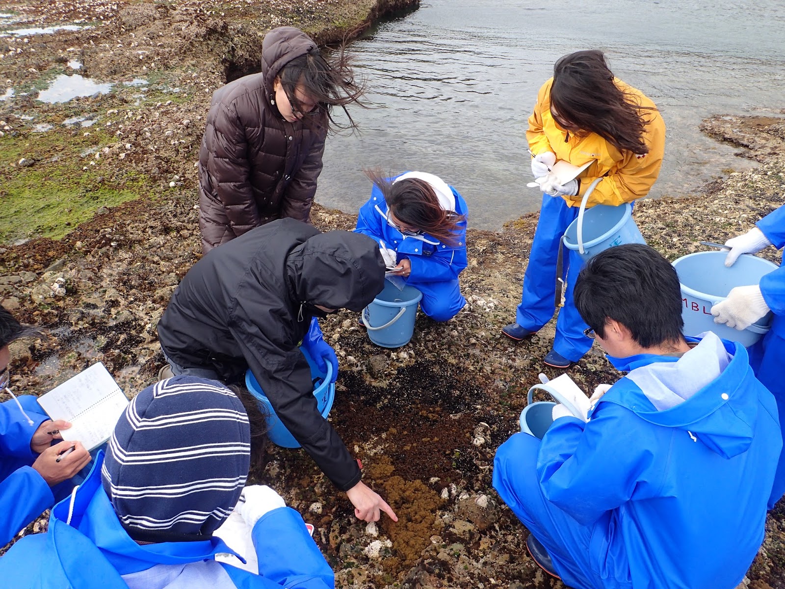 午後からは海岸で実物を採集・観察しました.実験所の眼前には,干潮時になると広大なタイドプールが出現します.
