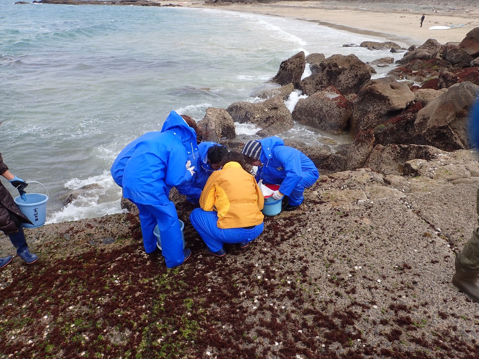 タイドプールの内部に生えている海藻も調べます.昨日学んだ海藻の知識が早速役に立つ場面です.逆に,覚えていないとヒドイ目にあうでしょう….