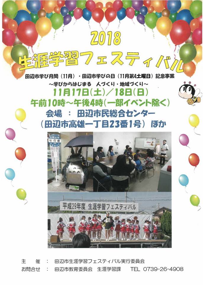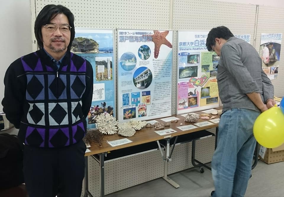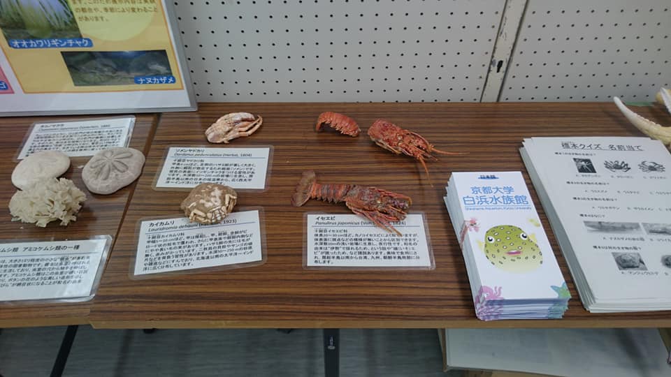 生涯学習フェスティバル(田辺市民総合センター) / イベント / By SMBL_Info / 2019年1月10日 和歌山県の田辺市で開かれている生涯学習フェスティバル(田辺市民総合センター)に、京都大学白浜水族館が出店しました。パネル展示、標本展示、海の生き物クイズなどを、水族館スタッフが中心となって作成しました。子供向けのヤドカリ釣り、ザリガニ釣りもあります。出店場所などの手配などや部屋全体のレイアウトなどは、環境省 近畿地方環境事務所の田辺自然保護官事務所の方々のご多大なご協力によるものです。