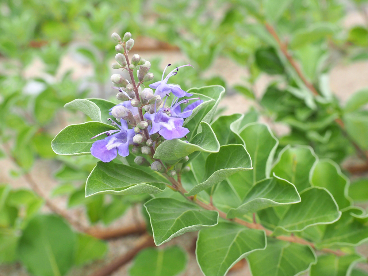 番所崎周辺では、海浜植物の比較的自然な植生を観察することができ、潮下帯では陸上から海中へ適応進化した植物(海草/うみくさ)が繁茂しています。