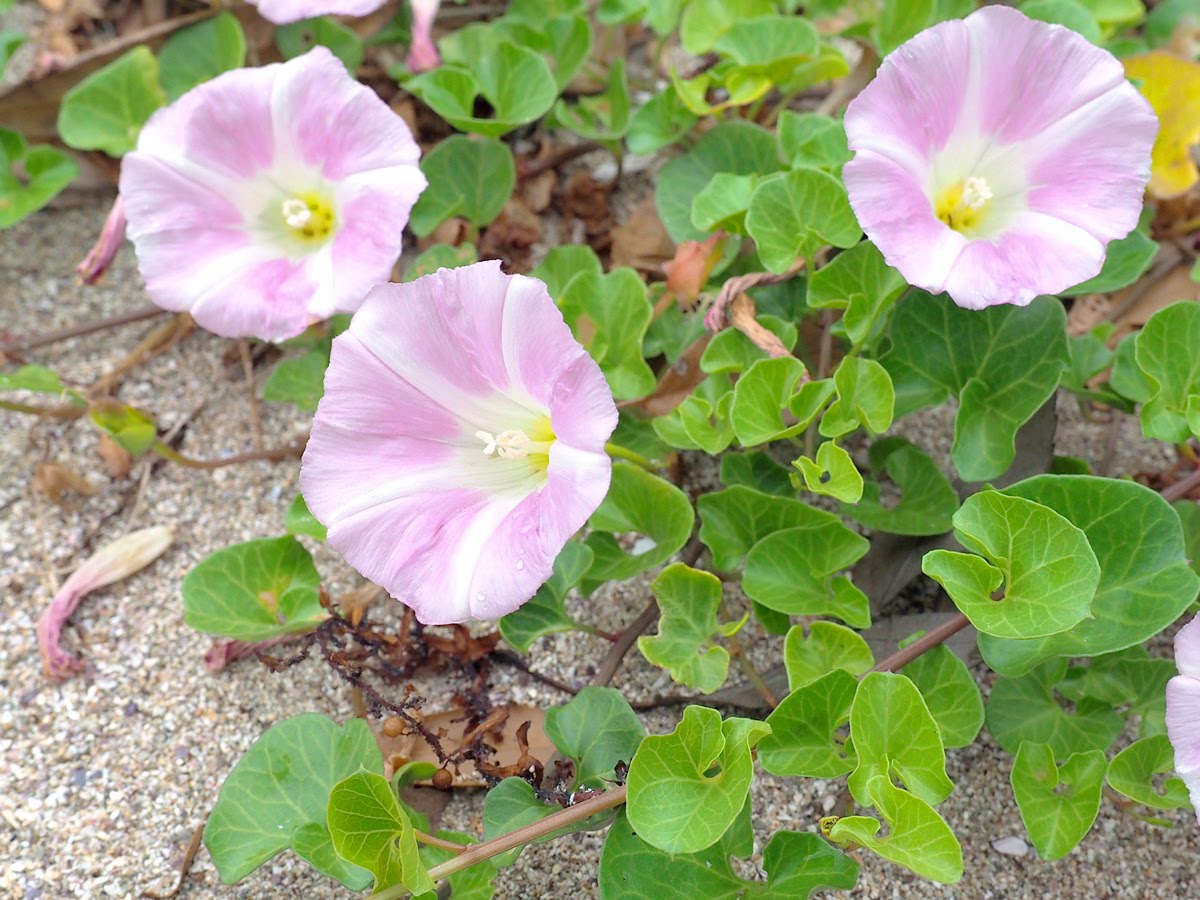 内陸部に生育する陸上植物と、海浜植物あるいは海草の形態的差異から、海浜や潮間帯・潮下帯への適応的な特徴を理解します。一部の植物を採集して持ち帰り、図鑑で同定して押し葉標本を作製します。