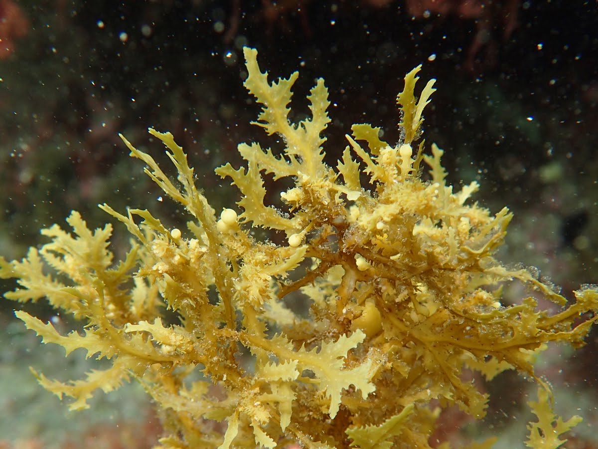 自然海岸の潮間帯に繁茂する大型の藻類(海藻)について、形態や生態を観察します。観察場所の番所崎は、黒潮の影響を強く受ける岩礁海岸で、大小様々のタイドプールがみられます。現場で海藻の色、形、手触りを観察し、標本として採集します。持ち帰った海藻は図鑑で調べ、同定の基準となる組織切片のスケッチも行います。また、種ごとの押し葉標本を作製します。