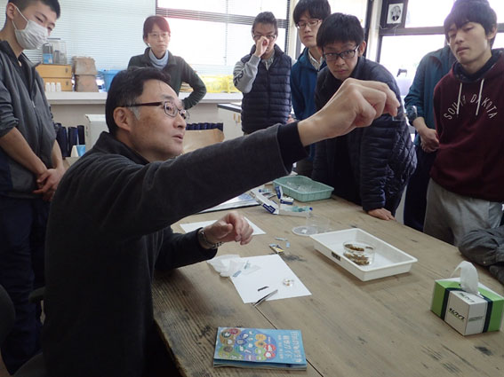 実習初日は講義から始まります。「せっかく海に来たのに講義?」と思うかもしれませんが、何事も基礎的な知識が大切。常識を知らなければ、何が大発見かもわかりません。