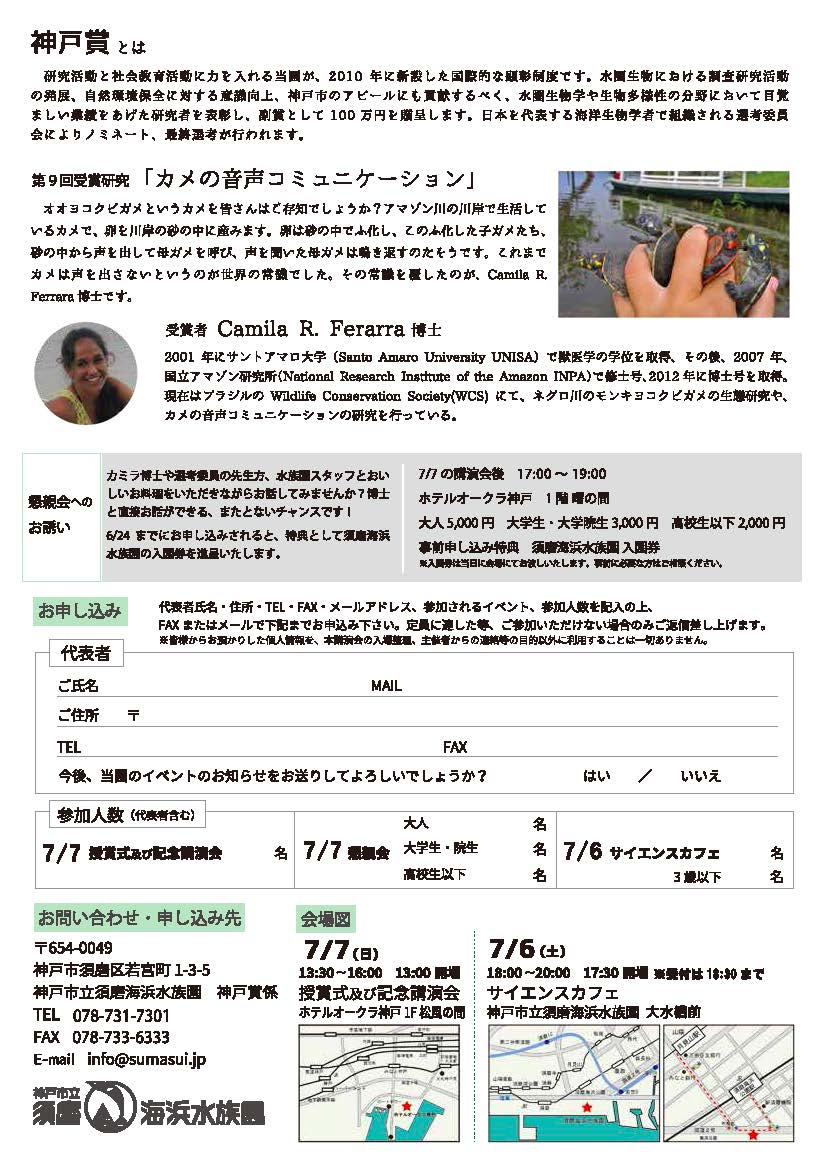 神戸賞とは、世界的にすぐれた業績をあげた海洋生物学者や水圏生物学者を神戸市立須磨海浜水族園が顕彰するものです。受賞記念講演とサイエンスカフェは、どなたでも参加できます。熱烈参加歓迎!