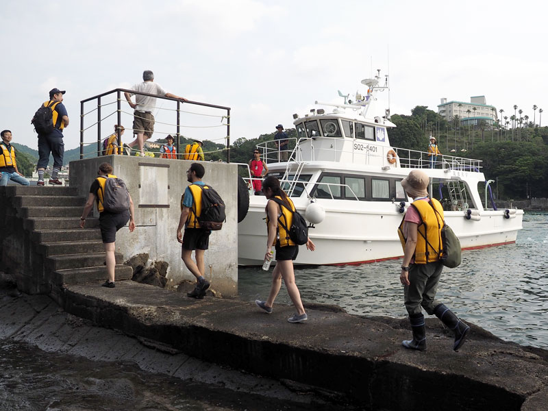 3日目はメインイベントの1つであるヒドロ虫採集です。下田臨海実験センターの前の海からつくばⅡに乗船して、各ポイントでドレッジとプランクトンネットを使って採集します。