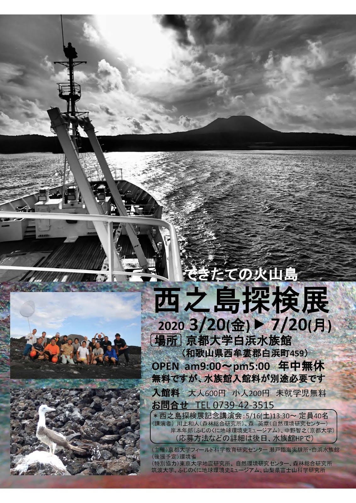春休みは、みんなで京都大学白浜水族館に遊びに行こう! / 白浜水族館 / By SMBL_Info / 2020年2月1日 春休みのイベント:京都大学白浜水族館 さまざまなイベントを実施します。 展示解説ツアー 2020年3月25日~4月7日 10:45~11:15 「研究者と飼育係のこだわり解説ツアー」 11:15~11:45 「バックヤードツアー」 詳しくはこちら! 大水槽エサやり体験 2020年3月25日~4月7日の月・火・水曜日 14:45~15:00 詳しくはこちら! 特別展「西之島探検展」 2020年3月20日~7月20日 詳しくはこちら!